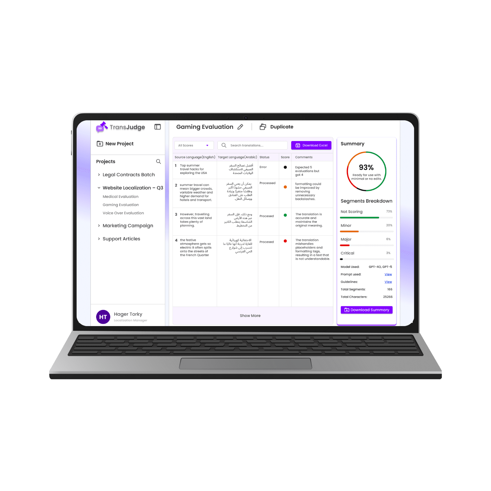 It delivers measurable translation quality assessment and reducing rework costs by up to 80%, accelerating project turnaround from weeks to hours, and ensuring 100% compliance with linguistic and cultural standards.